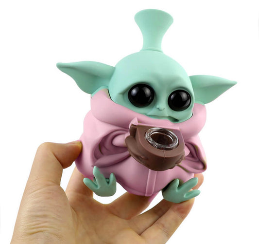 Bongo de silicone Baby Yoda com peças removíveis 13 cm rosa