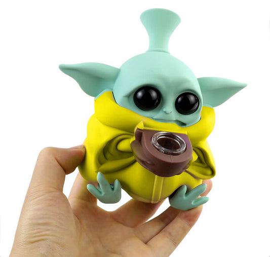 Bongo de silicone Baby Yoda com peças removíveis 13 cm bege